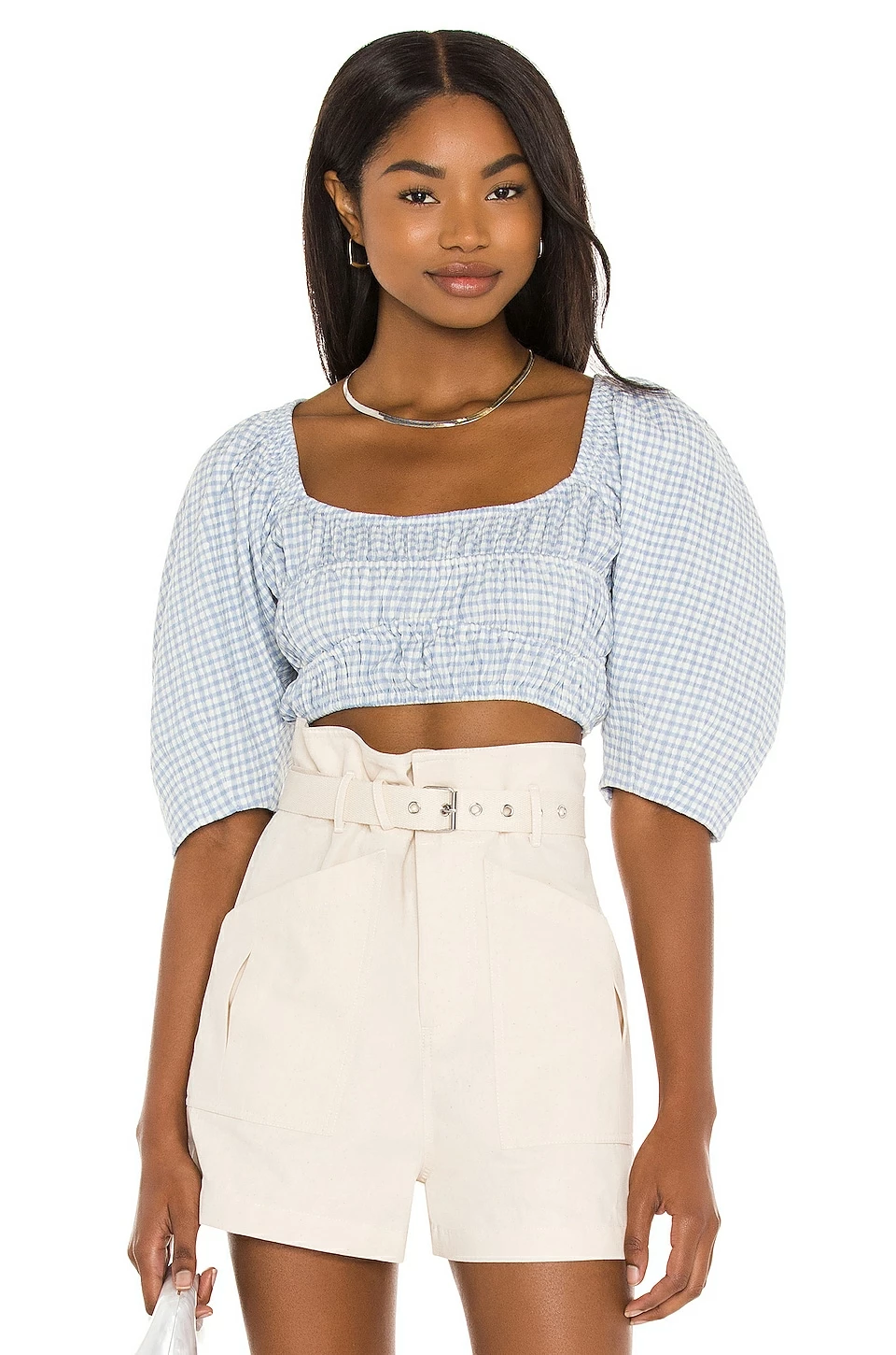 SKU: Cropped SOSR-WS135 Categories: Cropped, Tops Tags: Blue & White, Blue Tops, Cropped Tops, Gingham, Puff Sleeve Tops, Shades of Blue, Short Sleeve Tops