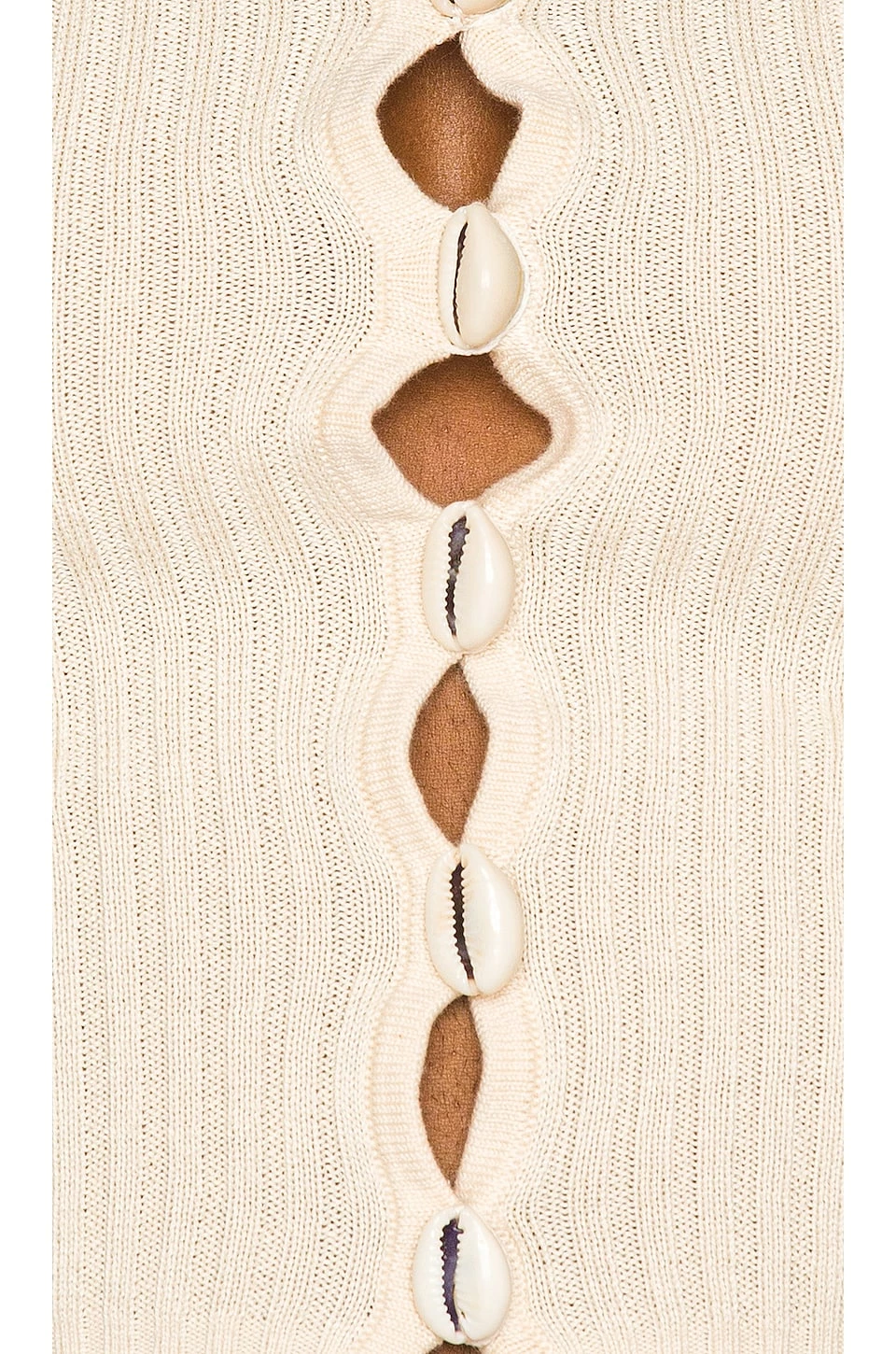 - Front cowrie shell button closure