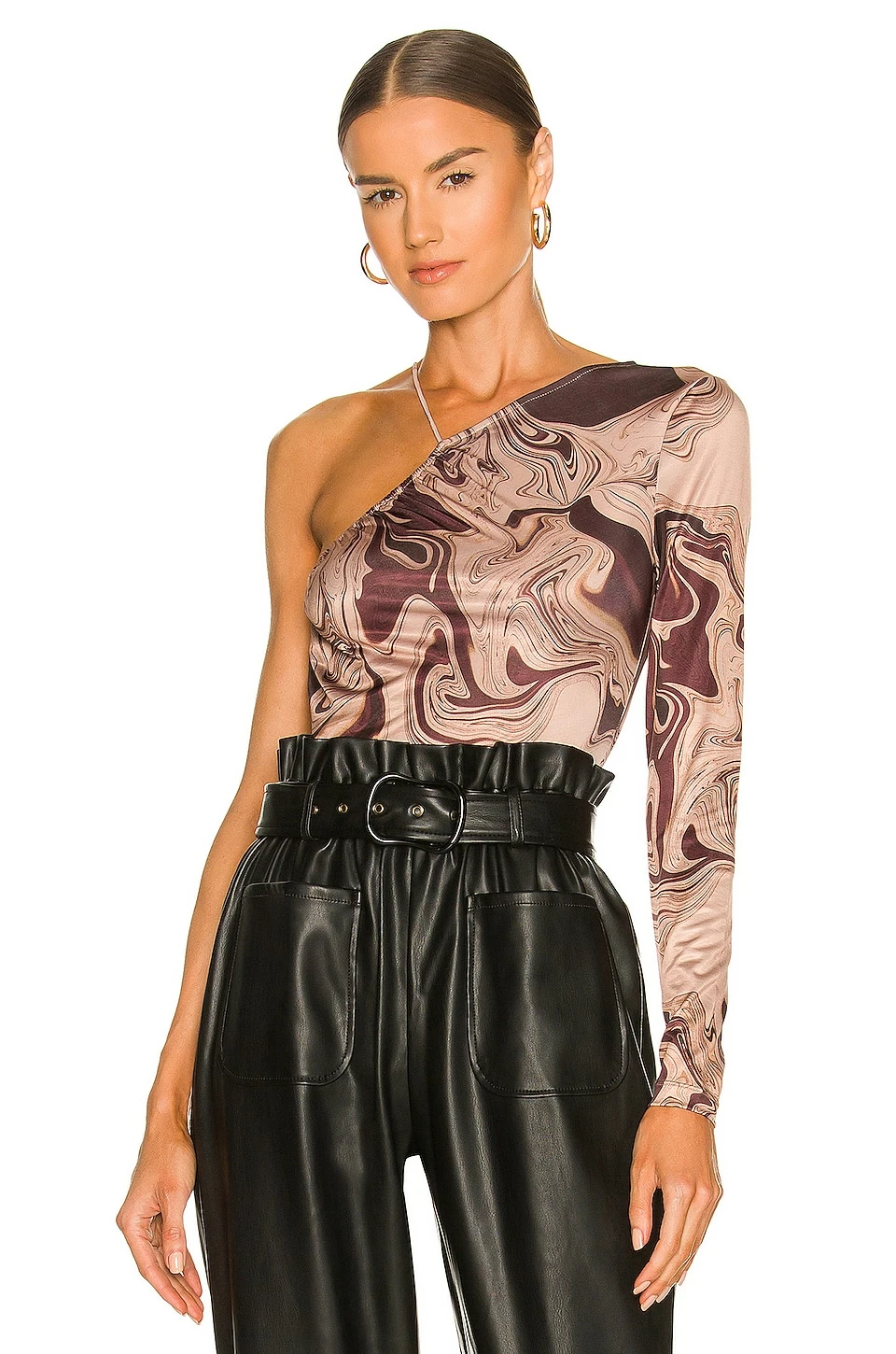 SKU: Bodysuits SOSR-WS172 Categories: Bodysuits, Tops Tags: Blouses, Bodysuits, Brown Marble, Brown Tops, One Shoulder, One Shoulder Tops, Ruching